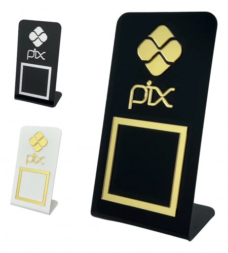 Com um design limpo e discreto, a placa ajuda a comunicar de forma clara que o estabelecimento aceita Pix, sem recorrer a papéis improvisados ou sinalizações informais.